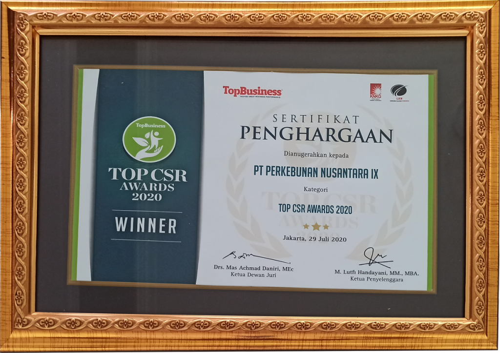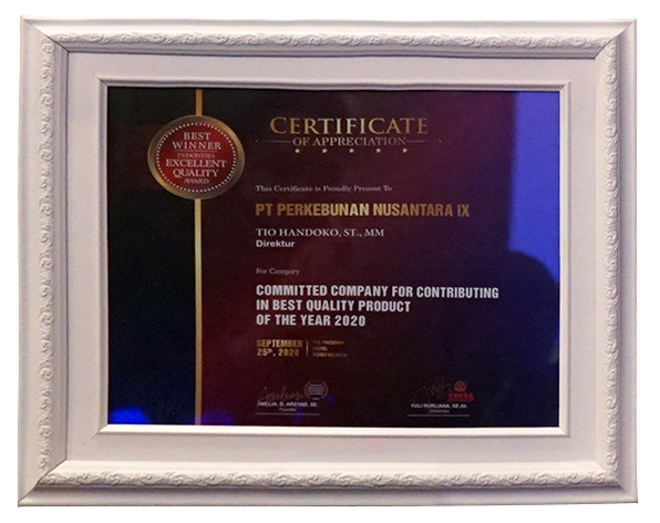 Piagam Penghargaan yang telah diraih oleh PT Perkebunan Nusantara IX